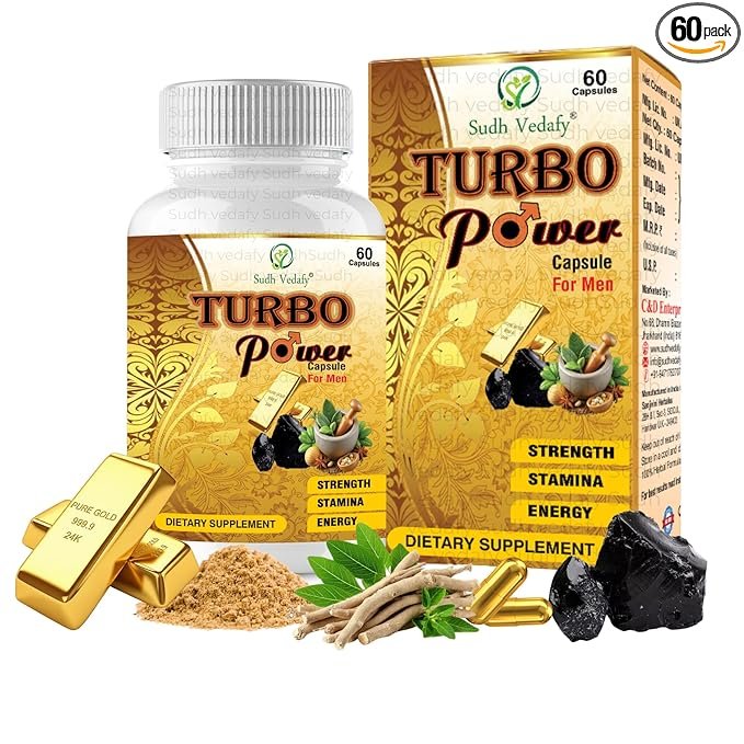 - Sudh Vedafy Turbo Power Capsules are specially formulated for men using traditional Ayurvedic ingredients, enriched with pure gold to support overall strength and performance.